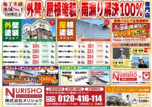 秋のチラシキャンペーンになります🍁🍁 とても多くのお問合せをいただいております(^^♪ 屋根塗装、外壁塗装をご検討の方は お問合せお待ちしております📞 会津若松 喜多方で塗装工事は ヌリショウにお任せください!