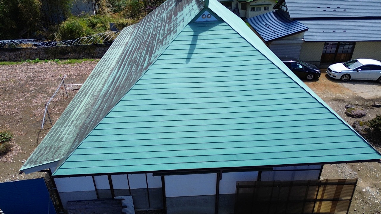 湯川村屋根塗装緑系
